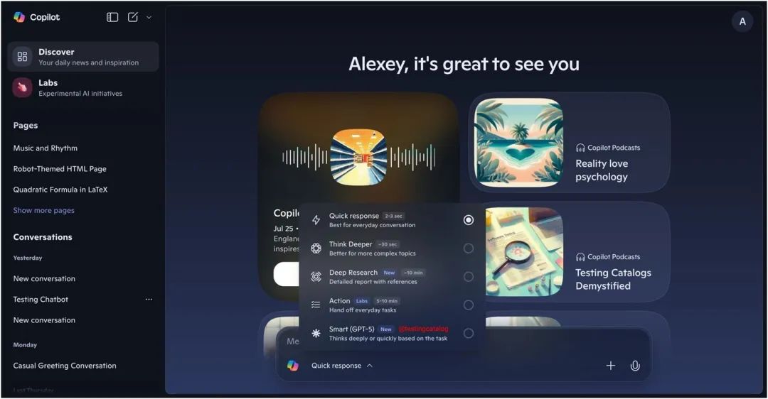此外,微软Copilot的代码也悄悄做了更新,准备推出一种带有GPT-5标签的新“智能”模式。熟悉微软AI计划的知情人士透露,微软正在消费者版和商业版Microsoft 365 Copilot上测试这个新模式。微软此前已有先例:在OpenAI正式发布GPT-4六周前,微软的AI版Bing就已经抢先用上了。