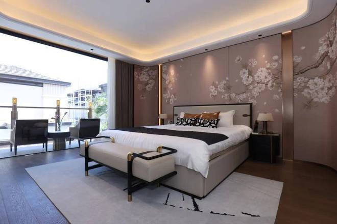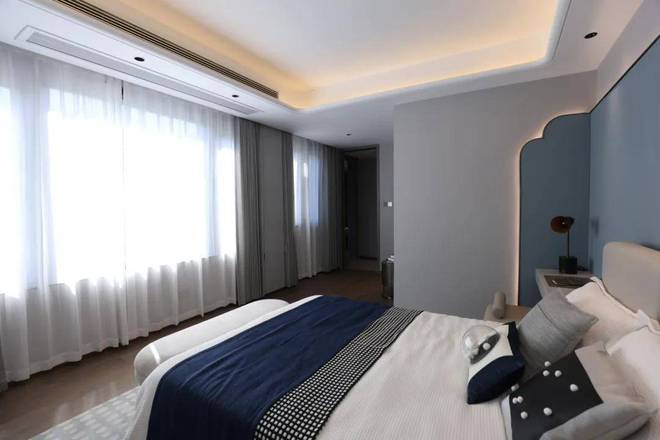 三层称得上是主人独立的“休憩行宫”了,一整层都是主卧!就寝区、衣帽间、卫浴间应有尽有,而且尺度还很舒适。