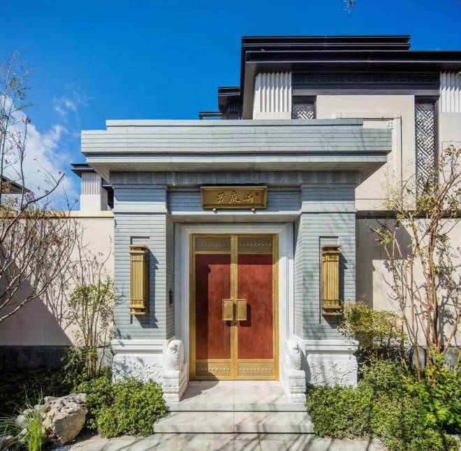 通过优化后的“L型”空间排布,实现了三面有园林环绕,前庭空间尺度非常大,一进门就是约10.2米的大横厅,气派十足,采光也做到极致,日常起居极为从容舒适。