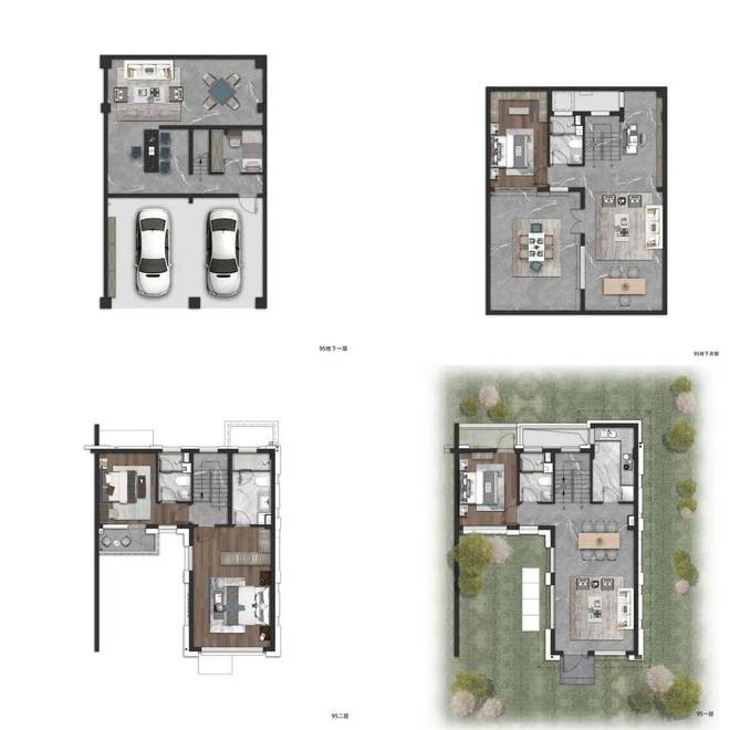 它实现了完整的“有天有地”,做到了地上2-3层+地下2层。不像叠墅,花园或露台通常只能二选一,营造了丰富的“垂直生活体系”生活。